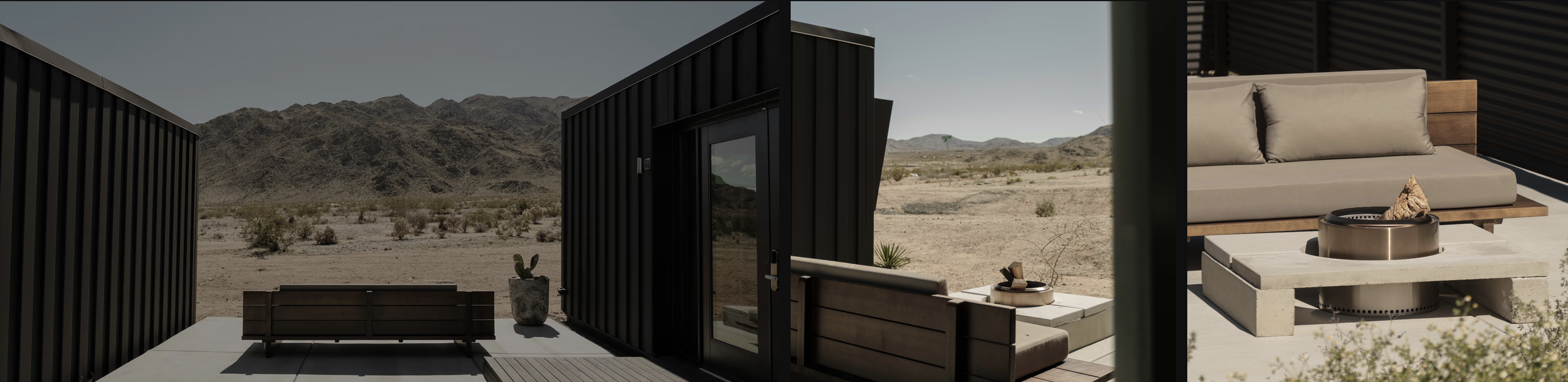 RESET translates Ben Uyeda’s container-inspired design language into a custom roll-formed modular system built for hospitality. Rather than accept the spatial and structural limits of standard shipping containers, the project was reverse-engineered to fit pre-approved foundations exactly, preserve the industrial clarity of the original concept, and perform in a harsh desert climate with far greater precision, comfort, and code compliance. The result is a repeatable room system that feels minimal and effortless, even though every dimension, connection, and finish was carefully resolved behind the scenes.